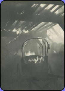 Brand in de boerderij, na het bombardement van het