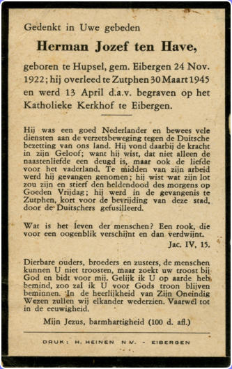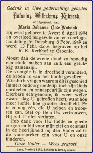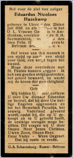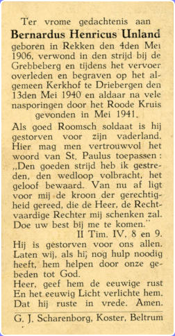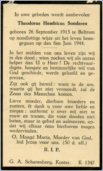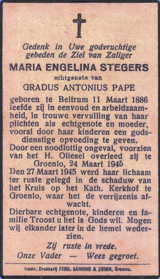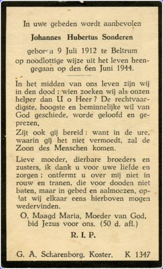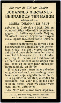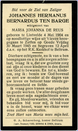 begraven. In de Beltrumse parochiekerk werd hij door velen op 12 februari 1949 herdacht.