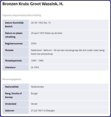 De Broers J.W. Groot Wassink en H. Groot Waasink uit Beltrum hebben als burgers in 1952 een bronzen kruis gekregen wegens lidmaatschap van een