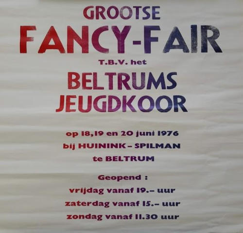 Ook de Fancy Fair voor de Engeland reis was een succes.  Natuurlijk bracht een dergelijke reis voor een zo groot koorgezelschap financiële kosten met zich mee.  De Fancy-fair commissie, bestaande uit de heren J. Scharenborg, W. Klein Gunnewiek, H. Wallerbos, Th. Roelvink, B. Lurvink, J. Hofman en Th. Groot Zevert organiseerde daarom een groots opgezette Fancy-fair die op 18, 19 en 20 juni 1976 werd gehouden bij Zaal Huinink in Beltrum. 1959 1967 1975 1977 1981 1984 1985 1999 2009 2015 2019