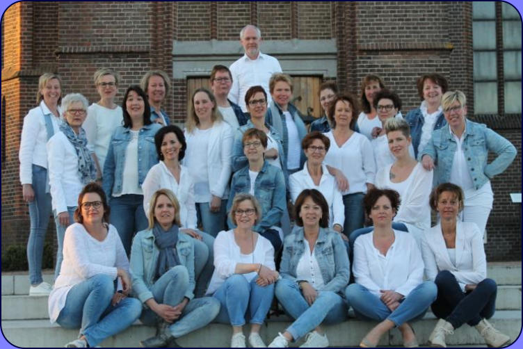 Archief Verenigingen Zanggroep Rhumtas  (voorheen Beltrums jeugdkoor) 2015  Op zondagmiddag 31 mei 2015 treedt Rhumtas weer eens op voor eigen publiek. De deuren van Dacapo, aan de Haarstraat in Beltrum, openen om 15.00 uur. Iedereen wordt verwelkomd met een kop koffie, thee of een andere consumptie (bij entree inbegrepen), waarna om 15.30 uur het concert begint. We hebben er dit keer voor gekozen om niet alleen a capella of met pianobegeleiding te zingen, maar zullen worden begeleid door de band ‘Paranoïd Bells’ uit Lichtenvoorde. Misschien bij enkelen al bekend van hun optreden bij het ‘Glazen Huus’ in Beltrum afgelopen jaar. Onze dirigent, Jeroen Twisk zal hierbij de pianopartij voor zijn rekening nemen. Het repertoire is natuurlijk op de begeleiding aangepast: afwisselend langzame en snelle popnummers, die zowel bij het koor als de bezoekers menig herinnering naar boven zullen halen. Als gast treedt Slagwerkgroep Concordia op; een jonge, enthousiaste groep slagwerkers, die het publiek steeds weer weet te verrassen.    2016 Der Frauenchor Rhumtas in Konzert. ''Ave Maria'' in acht Variationen gesungen. Zwillbrock 26 mitglieder des frauenchors Rhumtas aus Beltrum/nl haben am sontagnachmittag das geistliche Konzert mit dem Thema ''Hemelse klanken'' -''Himmlische Klänge''- in der Barockkirche Zwillbrock unter der Leiting von Jeroen Twist gestaltet. Unterstürst würde der Chor van Janne-Minke Nijp auf der Harfe und mit Marlijn te Brake auf der Flöte. Mit sicheren stimmen wurden die einzelnen Musikstücke vorgetragen. Das programm bot unter anderem acht Ave Maria von unterschiedlichen Komponisten, passend zum eben beendeten Maimonat. Wie vor 365 jaren die vorfahren uber die Grenze zum Mitternachtsgottesdienst gekommen waren, so kamen auch die Beltrummer Frauen uber die Grenze, um dieses Konzert in der Barockkirche zu gestalten. ''Ein schones Zeigen der Verbundenheit mit Zwillbrock'' sagte Kasstellan Bruder Hubert Müller. Der Chor wurde von vielen Landsleuten begleitet, zu sammen mit der übrigen Zuhörern gab es am Ende trostenden Beifal, der mit einer zugabe belohnt würde. Der Chor bedankte sich bei den Konzertbesuchern mit einem kleine Teelicht, das jeder beim Ausgang überreicht bekam.   2017  Friends in Music  Op zondag 25 juni was het dan zover: ons minifestival ‘Friends in Music’. Vrijdag 9 juni kon een deel van Beltrum al even kennis maken met het Kidsgear Children’s Choir uit Oeganda, binnenkort bij Rhumtas te gast op het festivalconcert ‘Friends in Music’. Vrijdag ging het koor op bezoek bij basisschool ‘De Sterrenboog’, waar ze enkele workshops gaven aan de leerlingen. Er werd geluncht in De Hassinkhof, en natuurlijk werd op beide locaties ook een spetterend optreden verzorgd. Op zaterdag de 24e en de zondagmorgen, was het plein voor Dacapo al opgeruimd en aangekleed tot een klein maar gezellig festivalterrein. De ingang was via het schoolplein van de voormalige Jenaplanschool Het Tweespan. Hier konden de bezoekers ook gebruik maken van het toilet. De weergoden waren ons goed gezind, want het was stralend weer. Veel bezoekers kwamen dan ook met de fiets of wandelend kijken naar de gezellige tentjes met allerlei Afrikaanse artikelen en kunst. De aanwezige kinderen konden Afrikaanse vlechtjes in hun haren laten zetten. En natuurlijk was ook de inwendige mens niet vergeten: heerlijke smoothies, Afrikaanse lekkernijen, waaronder een soort gevuld pannenkoekje en vers gezette Oegandese koffie.  2018  Paradiso, wie wil er nou niet optreden in deze poptempel. Afgelopen zondag 14 januari was het voor ons koor zover. We waren ingeloot om mee te doen met de jaarlijkse Paradiso Korendagen. Op deze 32e editie van de korendagen traden op zaterdag en zondag circa 140 koren uit het hele land op. Amateurzangers en zangeressen van alle leeftijden kwamen naar Paradiso om te laten horen dat zingen hun passie is. Het repertoire was zeer divers, van swingende popnummers tot renaissance muziek en van wereldmuziek tot jazz. Alle koren kregen 15 minuten voor hun optreden. ’s Ochtends vroeg zijn we met de bus naar Amsterdam gereden. Lekker relaxed met koffie en thee erbij. Bij aankomst in Paradiso hadden we nog ruim tijd om naar de optredens van andere koren te gaan luisteren. En om 16.15 uur was het onze beurt. Super spannend natuurlijk, maar met een paar extra repetities stonden we zelfverzekerd op het podium. We hadden gekozen voor de nummers Psalm (Frode Fjellheim), Nothing Else Matters (Metallica), Oceaan (Blof) en True Colors van Cindy Lauper. Het optreden, met onze dirigent Jeroen Twisk achter de piano, ging super goed en het publiek was heel enthousiast. We hebben allemaal genoten van het optreden, maar wat gingen die 15 minuten snel!   2019 1959 1967 1975 1977 1981 1984 1985 1999 2009 2015 2019 Rhumtas bestaat uit 26 enthousiaste vrouwelijke leden. Het repertoire is zeer afwisselend: van voornamelijk populair tot klassiek. De thuishaven is Beltrum, maar de leden komen naast Beltrum uit verschillende plaatsen rondom dit dorp. Momenteel staat het koor onder de bezielende leiding van de muzikale dirigent/pianist Jeroen Twisk. Hij is de 7e dirigent in de geschiedenis van het koor. Dirigenten 1. George Jansen (1959-1985) 2. Emiel Engel (1985-) 6. Martha Bruyn (-2002) 4. Christo Iliev 3. Hans Kienhuis 5. Bart Blaak 7. Jeroen Twisk (2002-heden)